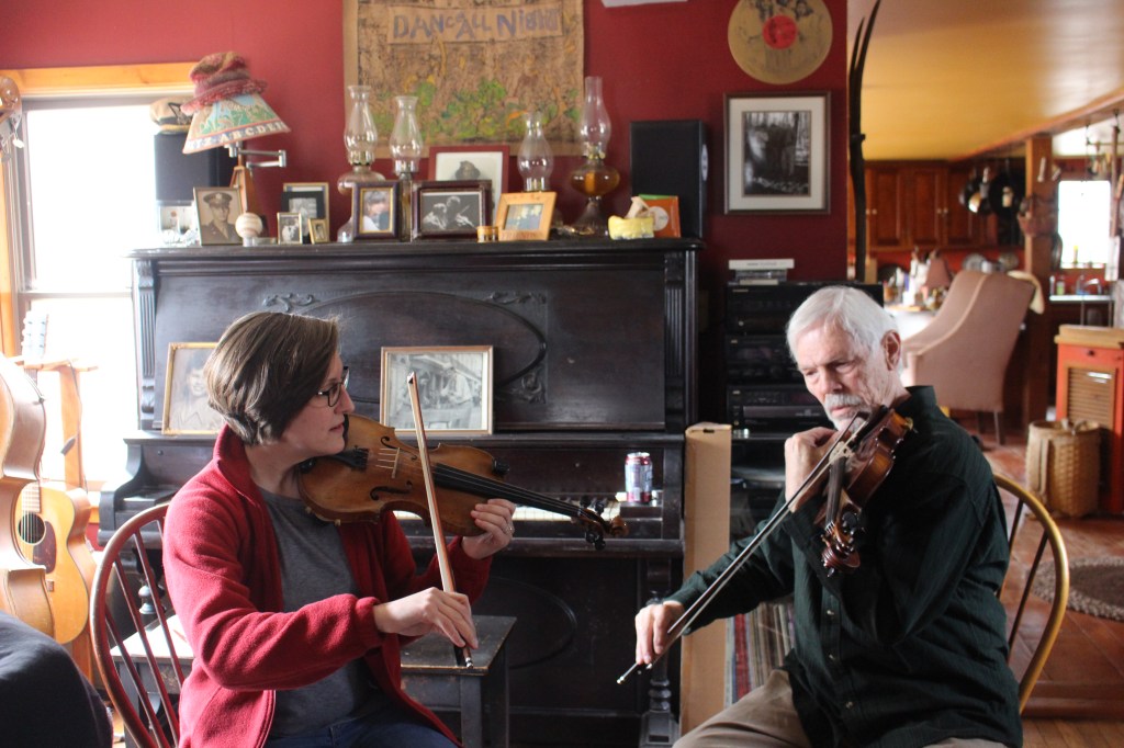 I recently returned from my first fieldwork trip across the state to meet a few of the participants of the West Virginia Folklife Apprenticeship program. Just before my trip kicked off, I went to Scott Depot to meet Angelita Nixon and Christine Weirick who practice home birth midwifery and will soon be presenting about their apprenticeship during their final showcase. On my way north to the eastern panhandle, I dropped by Poe Run Craft & Provisions in Elkins to visit Margaret Bruning who had apprenticed Kathy Evans. They practiced sheep husbandry, weaving, and the many steps in-between during a fiber arts apprenticeship titled “Sheep to Shawl.” The next day, I spent a long morning and afternoon talking and playing music with old time fiddler Joe Herrmann and his apprentice Dakota Karper, the owner of The Cat and the Fiddle in Capon Bridge. On the last leg of the trip, I headed west to Fairmont State University where I was able to catch NEA National Heritage Fellow John Morris give a presentation at the Frank and Jane Gabor West Virginia Folklife Center. John participated in the WV Folklife Apprenticeship program with Jen Iskow in 2018. With a full weekend of visits, I was lucky enough to have an afternoon with Gerry Milnes, the former Folk Arts Coordinator of the Augusta Heritage Center. We discussed his long career of documenting folklife in the state before we took out our instruments to play a few fiddle tunes in his living room.