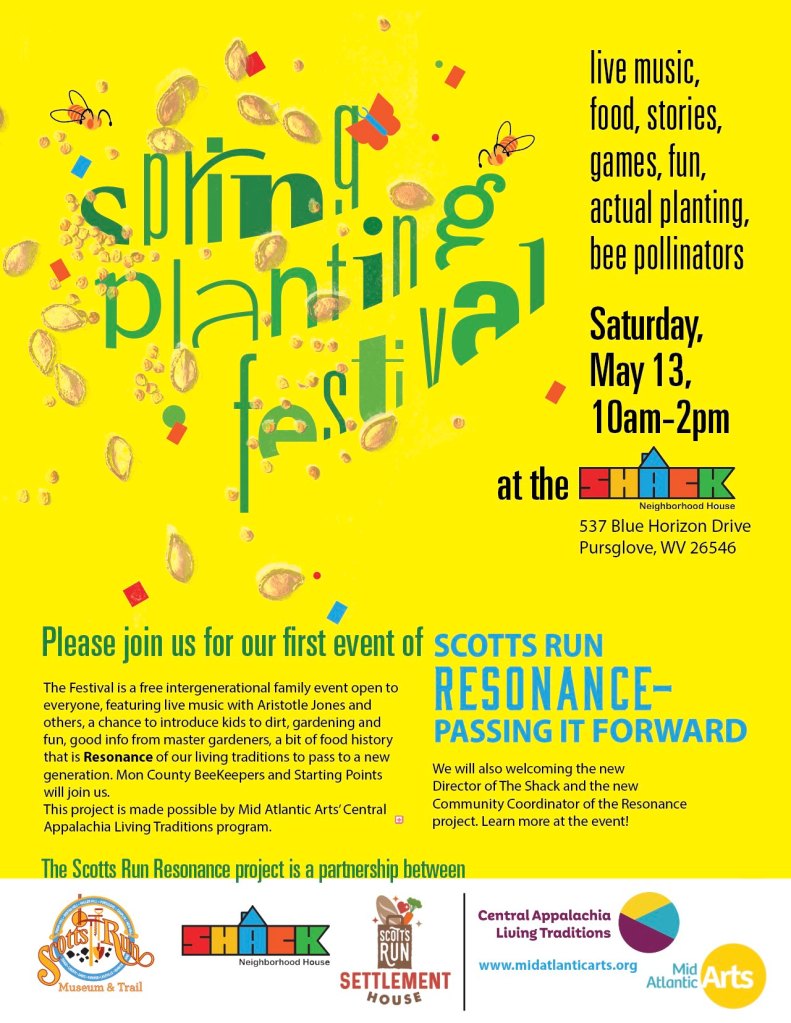 • May 13: Spring Planting Festival, The Shack and Scotts Run Museum