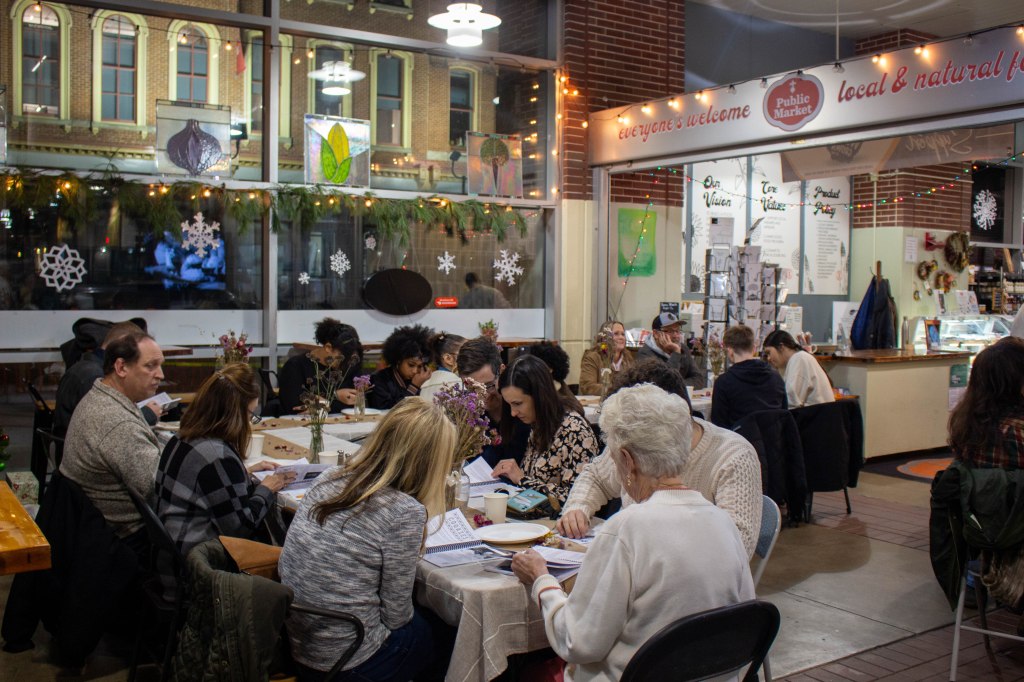 Congratulations to Grow Ohio Valley on their newly self-published Wheeling community cookbook titled “A Little of This, a Little of That.” Compiled by Emma Goldenthal and Corbin T Lanker, the cookbook is a wonderful collection of recipes, photography, and food stories from twenty-six local recipe and story contributors! On December 14, 2023, Grow Ohio Valley hosted a celebratory potluck dinner at the Public Market in downtown Wheeling with the cookbook’s featured contributors and their families.